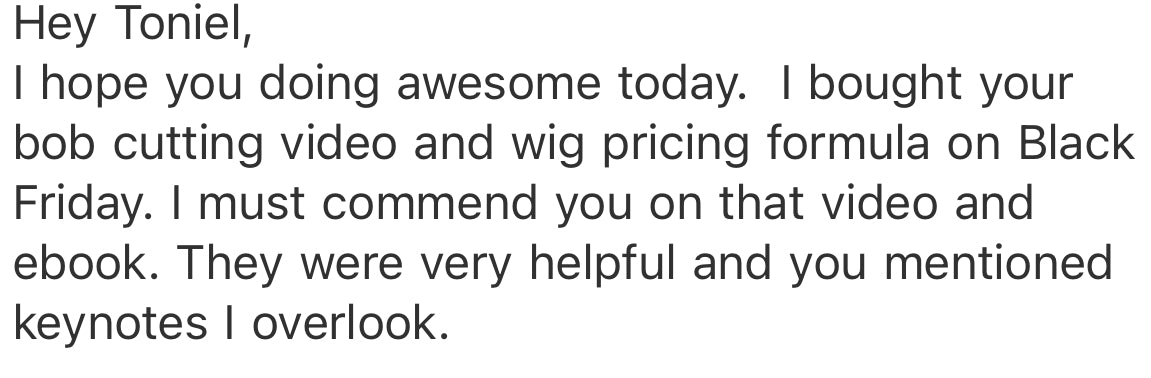 So if you're ready to take your wig or hair business to the next level, order your copy of the Hair and Wig Pricing Ebook today! With its easy-to-follow formulas and practical advice, you'll be able to price your bundles and wigs (custom and vendor made) with confidence and grow your business like never before.