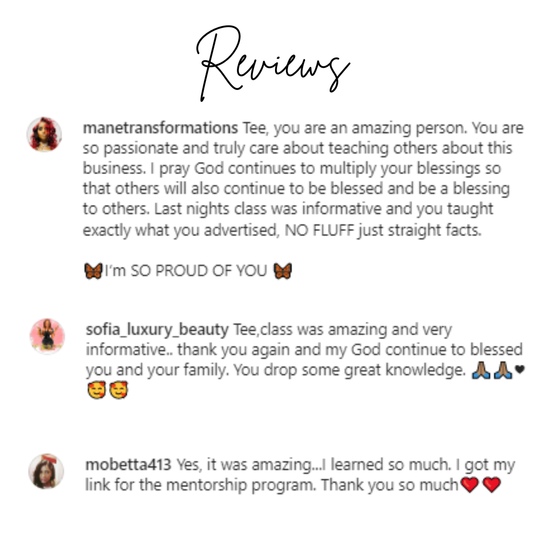 This Masterclass is designed for those who are serious about starting a wig business and want to work smarter, not harder. With this comprehensive guide, you can save weeks, or even months of time and avoid costly mistakes along the way. Each step is explained in detail, with clear examples to help you understand the key concepts. And, with lifetime access to the masterclass, you can revisit the information at any time as your business grows.